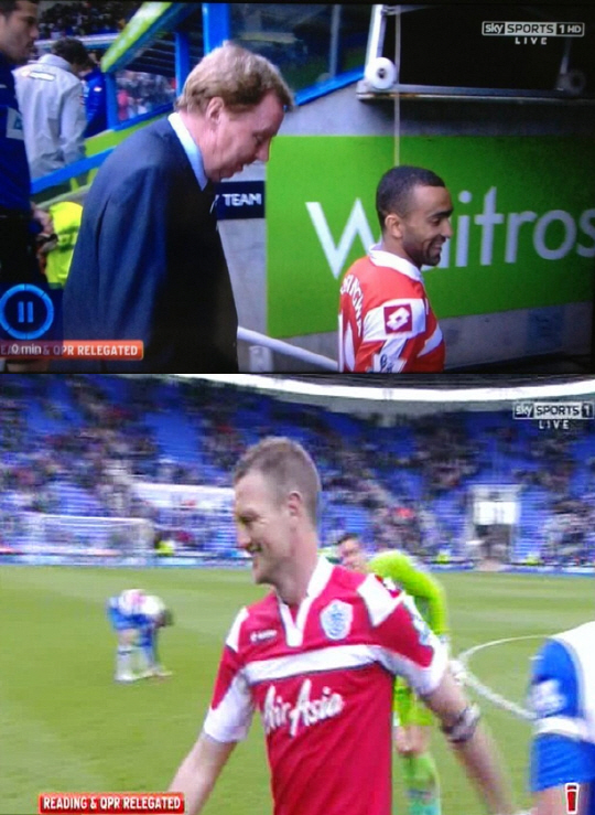 퀸스파크 레인저스(QPR)의 강등이 확정된 직후 헤리 래드냅 감독과 조세 보싱와 등 일부 선수가 웃는 모습이 중계 카메라에 포착돼 맹비난을 받고 있다.