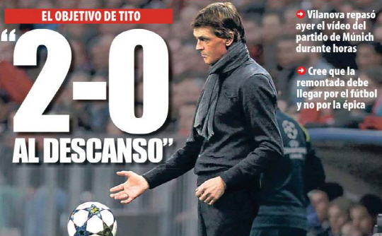 티토 빌라노바 바르셀로나 감독이 전반 2-0 스코어면 충분히 승산이 있다고 내다봤다.