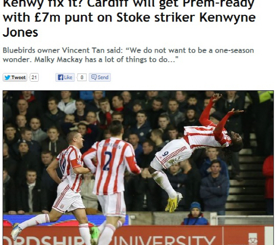 잉글랜드 프리미어리그(EPL)로 승격한 카디프시티가 전력보강 작업을 시작했다. 그들의 첫번째 타깃은 스토크시티의 공격수 켄와인 존스로 알려졌다.