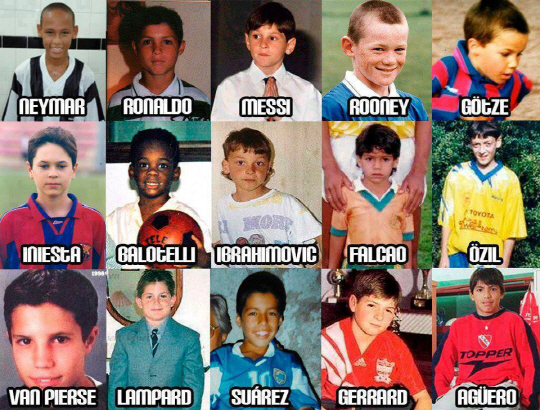 해외의 한 블로거가 현재 지구촌 그라운드를 호령하는 톱플레이어의 어린 시절 사진을 짜깁기한 이미지가 SNS 상에서 주목받고 있다.