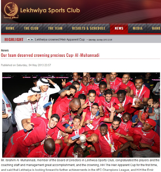 레퀴야는 5일 새벽(한국시각) 카타르 도하 자심 빈 하마드 경기장에서 열린 2013년 크라운프린스컵(왕세자컵) 결승전에서 알 사드와 맞붙었다. 알 사드에는 이정수, 라울 곤살레스가 활약하고 있다. 알 사드는 전반 14분 유니스 마흐무드가 선제골을 넣으며 앞서갔다. 하지만 레퀴야의 반격은 무서웠다. 이스마일 마흐무드, 아델 라미, 유세프 음샤크니가 연속골을 터뜨리며 역전에 성공했다. 알 사드는 경기 종료 직전 이정수가 추격골을 터뜨렸지만 더 이상의 골을 넣지 못했다.