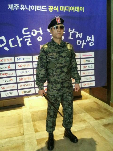 박 감독은 서울전 관중동원을 위한 두번째 깜짝 카드를 꺼냈다. 이번에는 전투복이다. 제주는 26일 서울과 홈경기를 치른다. 이날의 컨셉트는 '전투'다. 제주는 박 감독 부임 후 서울을 맞아 11번의 경기(4무7패)에서 한번도 이기지 못했다. 필승의 의지를 담아 '전투'라는 컨셉트를 잡았다. 이미 홍보물을 위해 전투복을 입고 사진까지 찍었다. 문제는 전투복을 입고 벤치에 앉느냐 여부다. 박 감독은 "자신이 없다. 만약 그렇다면 해외토픽에 날 것 같다. 구단과 상의하고 있지만, 그라운드를 도는 것이 더 낫지 않겠나. 마지막까지 고민하겠다"며 웃었다. 아이러니하게도 박 감독은 군대를 가지 않았다. 그는 1986년 서울아시안게임 금메달로 특례보충역 판정을 받았다. 구단에서도 이에 맞춰 서울전에 '쏘는' 음식으로 건빵을 준비한다. 지난해 7월 28일 서울과의 경기에 1만6910명이 운집해 한차례 가능성을 내비쳤다. 군복을 입은 박 감독이 염색까지? 26일 제주월드컵경기장을 찾을 이유가 또 늘었다.