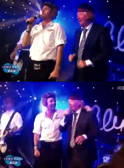 퍼거슨 감독이 춤 추고 노래를 하는 모습도 굉장히 낯설거니와, 머리에 띠를 두르고 여흥을 즐기는 포즈와 표정은 평소 추상같은 '헤어드라이어'의 이미지를 떠올릴 때 도저히 상상할 수 없는 장면이다.