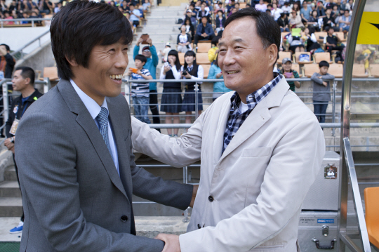 노련한 베테랑 감독과 패기 넘치는 신인 감독이 맞부딪혔다. 김호곤 울산 감독(62)이 11일 홈으로 서정원 수원 감독(43)을 불러들였다.