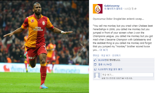 드로그바는 "이러고도 진정한 팬이라고 할 수 있는가? 여기 갈라타사라이 팬들의 댓글을 보고 교훈을 얻기를 바란다"면서 팬들의 각성을 촉구했다.