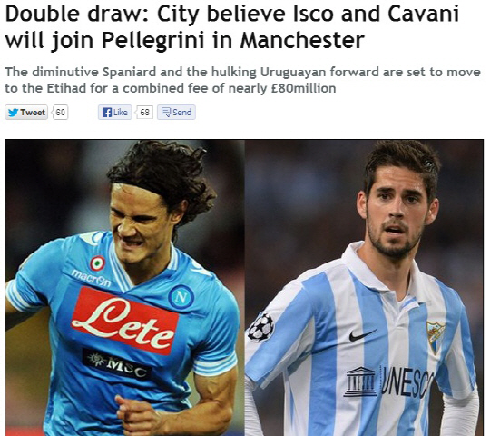 이스코는 첼시, 바르셀로나, 레알 마드리드의 러브콜을 받고 있다. 스페인 선수 특유의 장점을 모두 지닌 이스코는 유럽 최고의 유망주로 평가받고 있다. 카바니는 나폴리에서 137경기 동안 103골을 넣으며 새로운 득점 기계로 떠올랐다. 카바니는 파리생제르맹과 첼시의 구애를 받고 있다. 맨시티는 카바니 영입을 위해 반대급부로 에딘 제코를 제시할 뜻까지 전한 것으로 알려졌다.