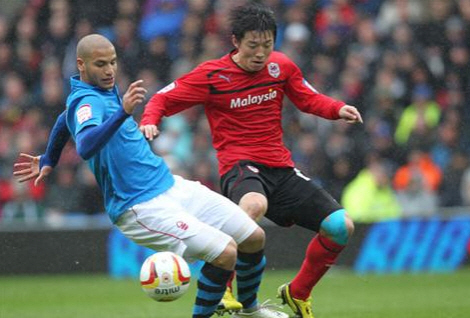 | ◇김보경이 지난달 17일(한국시각) 영국 웨일스의 카디프시티 스타디움에서 열린 찰턴과의 2012~2013시즌 챔피언십(2부리그) 43라운드에서 상대 선수와 볼을 다투고 있다. 사진출처=카디프시티 구단 홈페이지 |