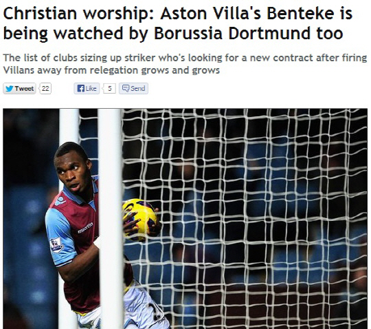 벤테케는 바이아웃 금액이 없고, 현재 계약 기간이 3년 남아 있다. 제임스 밀너, 가레스 배리(이상 맨시티), 애슐리 영(맨유) 등 스타선수들을 계속해서 뺏긴 애스턴빌라는 이번 만큼은 쉽게 에이스를 놓지 않겠다고 벼르고 있지만 상황은 여의치 않아 보인다.
