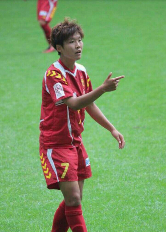 | ◇지소연이 18일 일본 오카야마현 간코 스타디움에서 열린 FC기비국제대학과의 2013년 나데시코리그 9라운드에서 팀 동료와 이야기를 나누고 있다. 사진제공=고베 아이낙 |