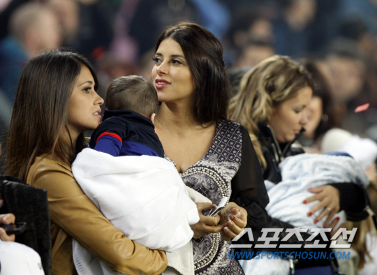 리오넬 메시(바르셀로나)가 20일(한국시각) 스페인 바르셀로나 누캄프에서 열린 바야돌리드와의 2012~2013시즌 프리메라 리가 마지막 홈경기가 끝난 뒤 아들을 앉고 그라운드에서 환하게 웃고 있다.