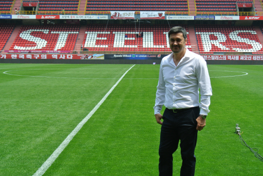 ◇포항 창단 40주년 기념 행사 참석을 위해 방한한 라데가 26일 포항 스틸야드에서 포즈를 취하고 있다. 사진제공=포항 스틸러스