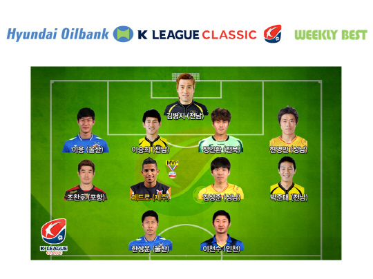 프로축구연맹이 29일 발표한 K-리그 클래식 13라운드 주간 베스트11(4-4-2)에서 전남선수 3명이 한꺼번에 선정됐다. 골키퍼 김병지, 수비형 미드필더 이승희, 공격형 미드필더 박준태 등 무려 3명이 이름을 올렸다.공수 각 1명, 골키퍼까지 전부문에서 뛰어난 경기력을 보여줬다는 뜻이다. 14개 구단 중 가장 많은 선수를 베스트11에 올리며, '전남 불패 신드롬'을 숫자로 입증했다.