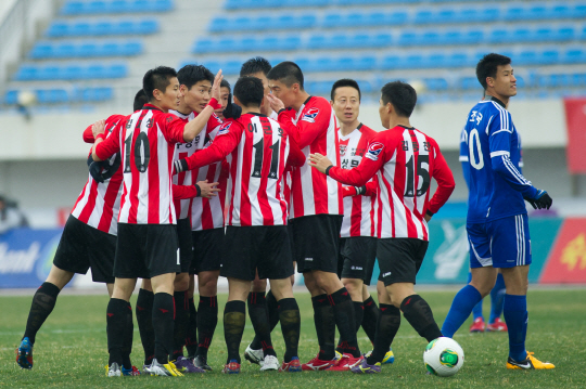 K-리그 클래식 13라운드의 화두는 단연 '탐라 대첩'이었다. 제주와 FC 서울의 경기가 열린 26일 제주월드컵경기장. 경기장 밖에는 전차가 등장했다. 별 3개를 단 군복을 입은 박경훈 제주 감독이 서울과의 전쟁으로 선포했다. 그라운드에서도 치열한 전투가 벌어졌다. 4골씩 주고 받는 공격 축구의 진수를 선보이며 4대4 무승부를 기록했다. 1만8751명의 구름 관중이 몰렸다.