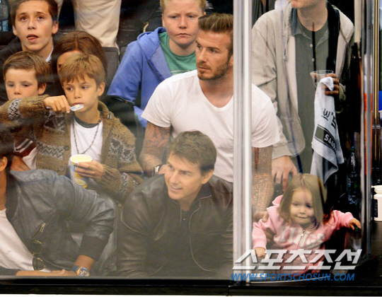 할리우드 톱스타 톰 크루즈(50)와 축구스타 데이비드 베컴(38) 가족이 아이스하키 경기를 관람했다.