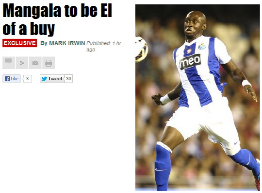 망갈라는 2년전 550만파운드에 스탄다르 리에쥬를 떠나 포르투 유니폼을 입었다. 망갈라는 포르투갈 리그 최고의 수비수로 떠오르며 유명세를 떨치고 있다. 무리뉴 감독은 중앙 수비수 다비드 루이스의 능력에 대해 아쉬운 마음을 갖고 있는 것으로 알려졌다. 더선은 바르셀로나의 관심을 받고 있는 루이스를 방출하고 그 돈으로 망갈라 영입전에 적극적으로 나설 가능성도 있다고 했다.