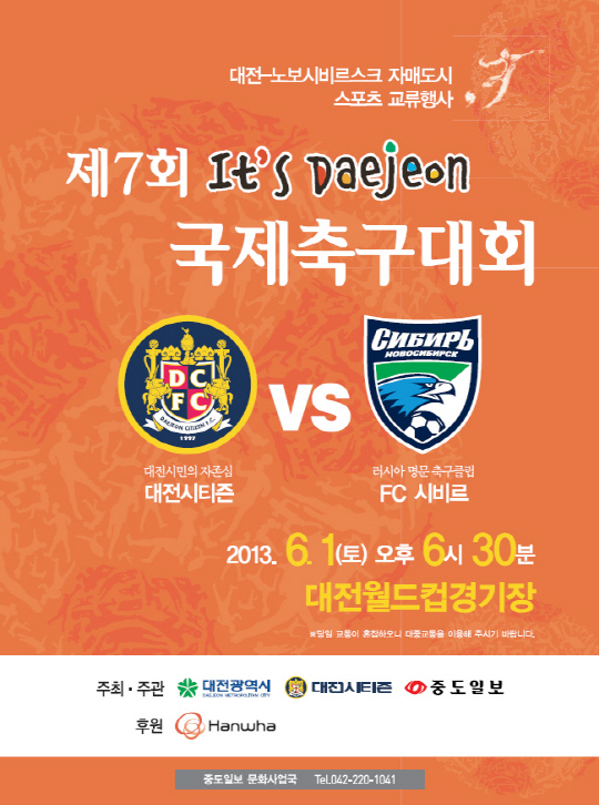 올해로 7회째를 맞는 'It's Daejeon 국제축구대회'는 대전과 러시아 노보시비르스크 두 도시 교류협력의 가교 역할 뿐만 아니라 지역 주민들의 화합을 다지는 즐거운 잔치가 될 것으로 기대된다. 이번 대회에 초청받은 FC시비르는 1936년 창단된 유서 깊은 축구단이다. 러시아 1 디비전 소속이며 스파르타크 경기장을 홈구장으로 사용하고 있다. FC시비르의 연고지인 노보시비르스크는 러시아를 대표하는 과학도시로, 지난 2001년 대전광역시와 자매결연을 체결한 이후 12년간 꾸준히 교류해 왔다.