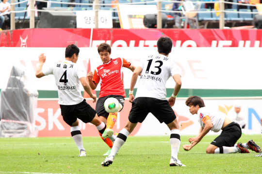 1일 제주월드컵경기장에서 열린 제주 유나이티드-포항 스틸러스 간의 맞대결은 패스를 기반으로 바람몰이를 하는 두 팀 간의 대결로 관심을 모았다. FC서울전에서 화끈한 공격축구로 4골을 주고 받았던 제주는 승리를 장담했다. 이명주 신광훈의 A대표팀 차출과 황지수 신화용의 부상, 박희철의 징계로 주전 절반이 떨어져 나간 포항에게는 선두수성의 기로였다. 관건은 누가 패스 줄기를 막느냐였다. 난타전 끝에 원정팀 포항이 3대2로 제주를 눌렀다. 이날 승리로 포항은 전반기를 맨 꼭대기에서 마치면서 기분좋게 후반기 준비에 들어갈 수 있게 됐다. 반면 제주는 서울전에 이어 또 대량실점을 하면서 안방 무승의 성적표에 고개를 떨궜다.