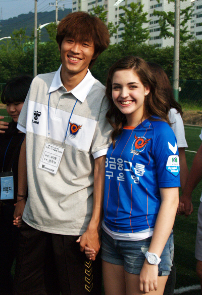대구에 발터 코치가 합류한다. 선수들과 팬들은 환영 일색이다. 특히 발터 코치의 딸인 지오반나의 복귀에 관심이 크다. 사진은 지난해 서포터스 데이에서 이지남과 포즈를 취한 지오반나. 사진제공=대구FC