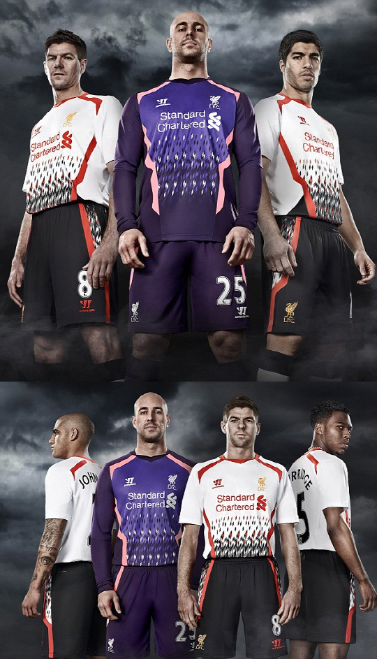 '데일리 메일' 등 영국 언론들은 스티븐 제라드와 루이스 수아레스, 골키퍼 페페 레이나 등 리버풀 스타들이 모델로 등장한 리버풀의 2013~2014시즌 원정 유니폼을 5일 공개했다.