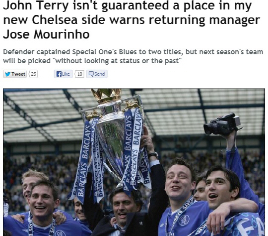 조제 무리뉴 감독이 결국 첼시와 '재혼'에 성공했다. 이를 두고 고민에 빠진 한 남자가 있다. '첼시의 혼' 존 테리다.