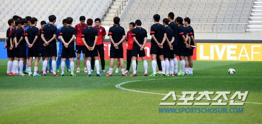 최강희호가 10일 상암동 서울월드컵경기장에서 11일 열리는 2014년 브라질월드컵 아시아 최종예선 7차전 우즈베키스탄과 경기를 앞두고 막바지 훈련에 임했다. 본격적인 훈련 전 최강희 감독이 선수들과 미팅을 갖고 있다. 상암동=송정헌 기자 songs@sportschosun.com/2013.6.10
