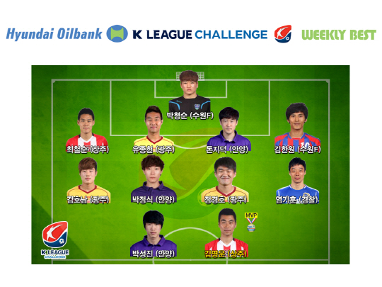 김명운과 함께 최고의 공격수로는 안양의 박성진이 이름을 올렸다. 미드필드진에는 염기훈(경찰) 정경호(광주) 박정식(안양) 김호남(광주)가, 포백 라인에는 김한원(수언FC) 돈지덕(안양) 유종현(광주) 최철순(상주)가 자리했다. 박형순(수원FC)은 13라운드 최고의 수문장으로 선정됐다.