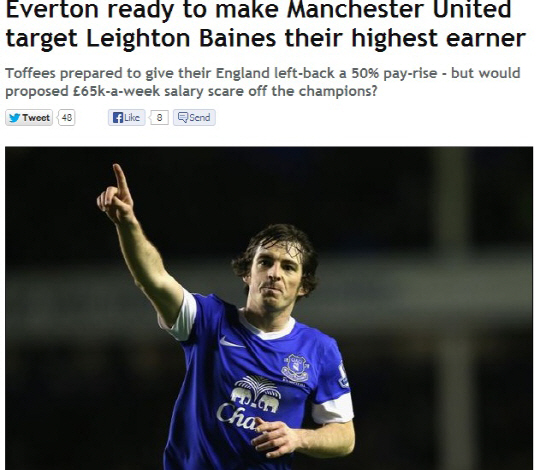 에버턴이 레이턴 베인스 잔류를 위해 총력을 기울이고 있다. 14일(한국시각) 영국 일간지 데일리미러는 에버턴이 베인스 잔류를 위해 팀내 최고 주급을 제안할 것으로 보인다. 베인스는 날카로운 공격가담과 안정된 수비력으로 잉글랜드 최고의 왼쪽 윙백으로 꼽히고 있다. 왼쪽 윙백 보강이 필요한 데이비드 모예스 신임 맨유 감독은 에버턴 시절 인연을 들어 베인스에 적극적인 러브콜을 보내고 있다.