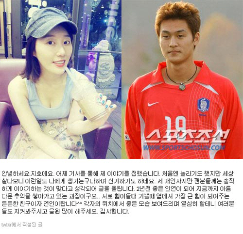 이어 그는 "제 개인사지만 팬 분들께는 솔직하게 이야기하는 것이 맞는다고 생각되어 글을 올립니다"라며 "2년 전 좋은 인연이 되어 지금까지 아름다운 추억을 쌓아가고 있는 과정이고요"라며 축구선수 여효진과의 열애설을 공식 인정했다.