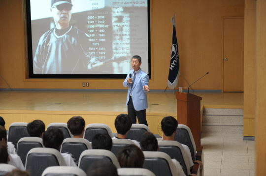 전북 현대 선수단이 '야신' 김성근 고양 원더스 감독의 강연을 듣고 프로 정신을 되새겼다.
