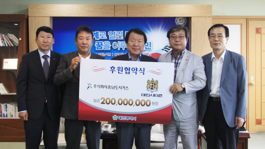 주식회사 충남도시가스(대표이사 노승주)가 대전 시티즌과 후원협약을 맺고 후원금을 전달했다.
