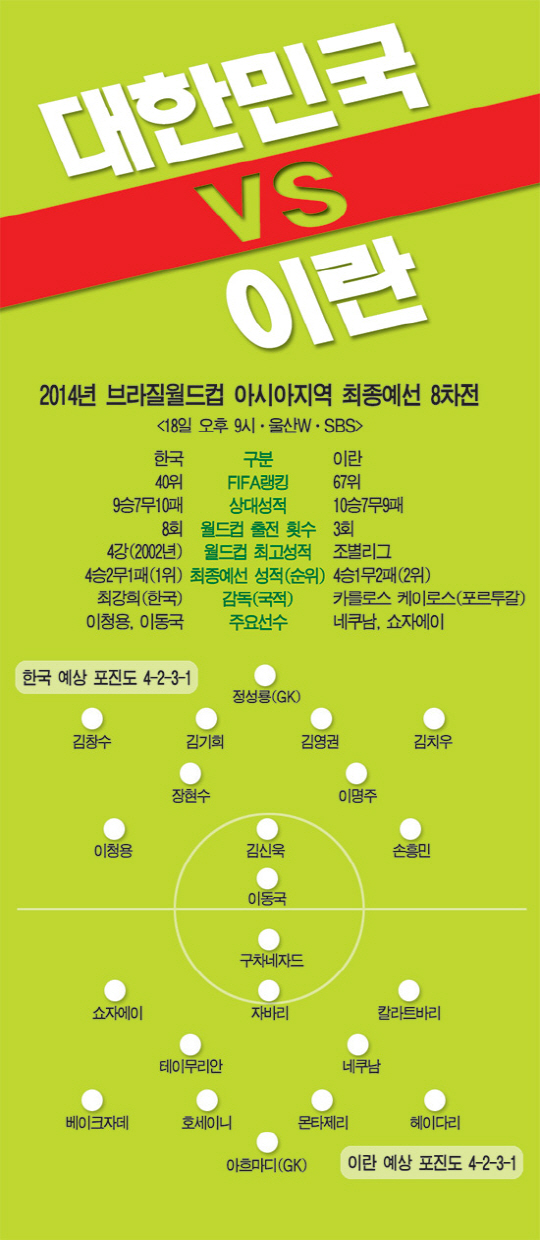 최강희 감독과 포르투갈 출신 카를로스 케이로스 감독의 설전으로 최종전이 뜨겁게 달아올랐다. 무성한 말들, 더 이상 의미가 없다. 그라운드에서 골로 얘기해야 할 때다. 최후의 매치, 3가지 키포인트를 짚어봤다.