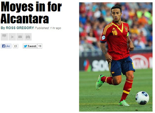 맨유가 티아구 알칸타라(바르셀로나) 영입에 박차를 가하고 있다.