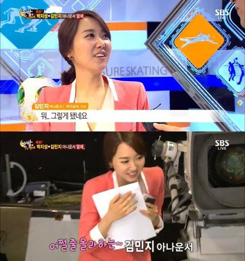 이날 김민지 아나운서는 김일중 아나운서가 "박지성과의 열애 보도에 대해 어떻게 생각하느냐?"고 묻자 "그렇게 됐네요"라며 인정했다.