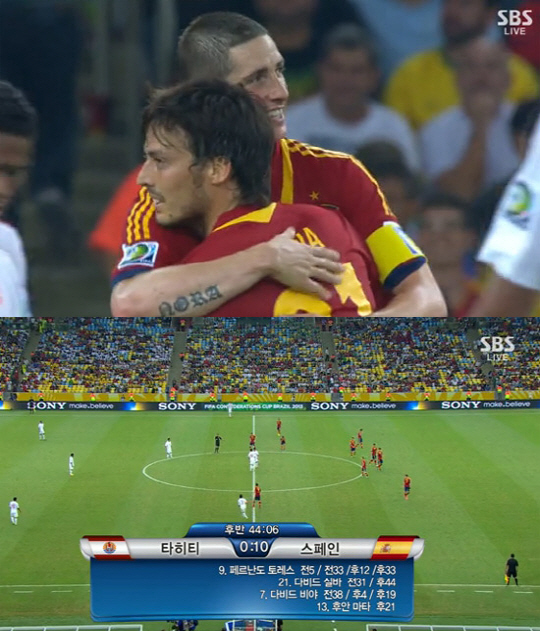 스페인은 21일(이하 한국시간) 새벽 브라질 리우데자네이루의 에스타디우 두 마라카낭 경기장에서 열린 2013 FIFA(국제축구연맹) 컨페더레이션스컵 B조 조별리그 2차전 타히티와의 경기에서 10-0 대승을 거뒀다.