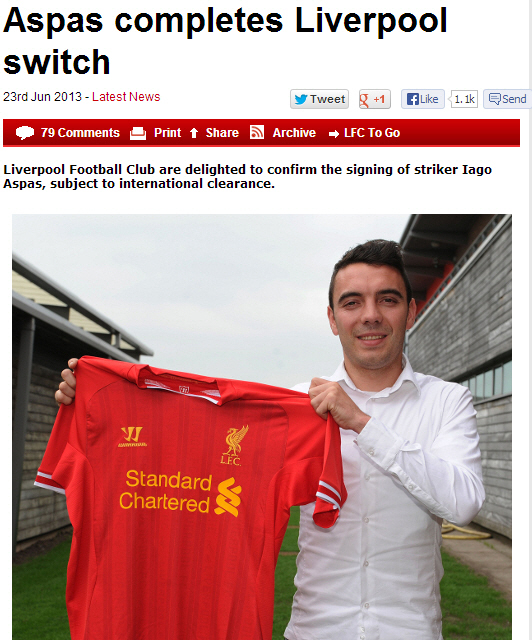 리버풀은 24일(한국시각) 구단 홈페이지를 통해 아스파스 영입을 공식 발표했다. 계약 세부사항은 밝히지 않았다. 영국 현지 언론들은 리버풀이 아스파스 영입을 위해 셀타비고에 770만파운드(약 140억원)를 지불했을 것으로 추정하고 있다. 아스파스는 지난 시즌 34경기에 나서 12골-7도움을 기록하면서 셀타비고의 잔류에 힘을 보탰다.