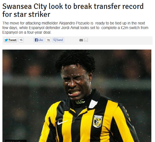기성용을 영입할 시 지급했던 구단 최고 이적료(600만파운드)의 역사 마저 깰 각오다. 스완지시티의 마음을 사로잡은 이는 지난 시즌 네덜란드 리그의 득점왕 윌프레드 보니(비테세)다.