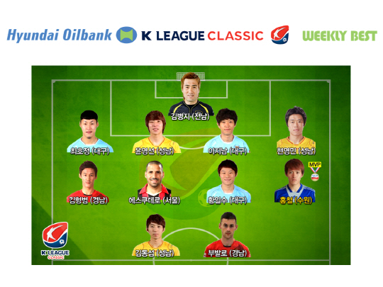 한편, 울산을 5대3으로 제압하고 시즌 첫 승의 감격을 누린 대구는 14라운드 베스트팀으로 뽑혔다. 베스트11은 홍 철을 비롯해 부발로(경남) 김동섭(성남) 황일수(대구) 에스쿠데로(서울) 김형범(경남) 현영민(성남) 이지남(대구) 윤영선(성남) 최호정(대구) 김병지(전남)가 선정됐다. 수원-전북전은 베스트 매치로 선정됐다. 박상경 기자 ppark@sportschosun.com