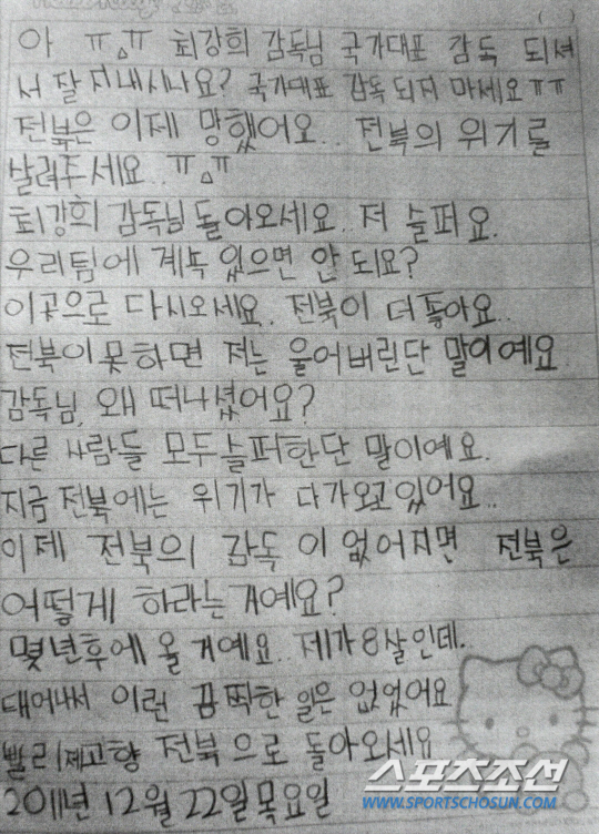 '봉동이장' 최강희 감독이 복귀한 전북현대가 30일 전주월드컵경기장에서 경남FC와 경기를 벌였다. 이날 경기는 전북이 4-0의 대승을 거두며 경기장을 찾은 전북팬들을 감동시켰다. 서포터스들은 최강희를 연호하며 최강희 감독의 복귀를 축하했다.