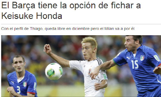 매체에 따르면 바르셀로나는 혼다가 일본과 이탈리아의 2013 FIFA 컨페더레이션스컵 조별 리그에서 빼어난 수비력을 보여 준 점에 주목했다. 올해 말 소속팀과의 계약이 끝나기 때문에 기량에 비해 가격 경쟁력도 우월할 것으로 보고 있다.