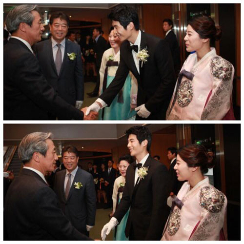 정몽준 회장은 2일 자신의 트위터에 기성용 결혼식에 참석해 새 신랑과 신랑 가족들과 인사를 나누는 사진을 공개하면서 "성용이를 볼 때면 어서 좋은 사람 만나라고 응원(?)을 했었는데, 아름다운 신부와 인생의 멋진 새출발을 축하..행복한 결혼 생활되고 튼튼한 아이도 많이 낳아라"라고 덕담을 남겼다.