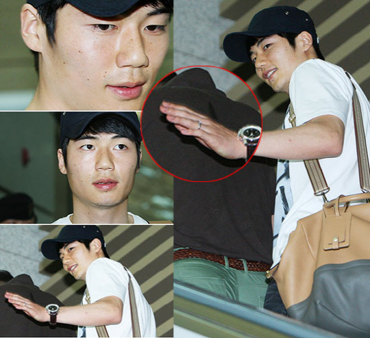 결혼식 하루 만에 홀로 영국으로 먼저 출국하는 기성용의 옆에 아내 한혜진은 없었지만, 그의 손에 결혼반지가 빛나고 있어 더욱 든든해 보인다.