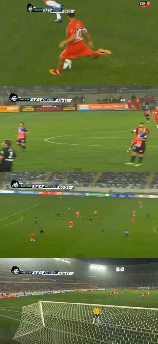 중앙선 부근 40m 지점에서 공을 잡자마자 골키퍼 페르난도 무슬레라가 약간 앞 쪽으로 나온 것을 보고 지체 없이 슛을 날렸다. 공을 곧고 빠르게 날아가 골망을 흔들었다.