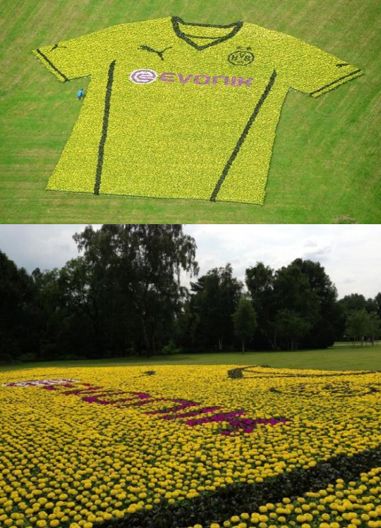홈구장인 베스트팔렌 스타디움 공원 잔디 위 1000제곱미터(약 300평) 넓이에 8만645 송이의 꽃으로 대형 유니폼을 수놓은 것이다.