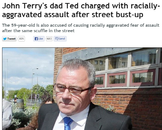 인종차별 파문을 일으켰던 존 테리(32, 첼시)의 아버지도 인종차별 발언으로 법적 처벌 위기에 몰렸다.