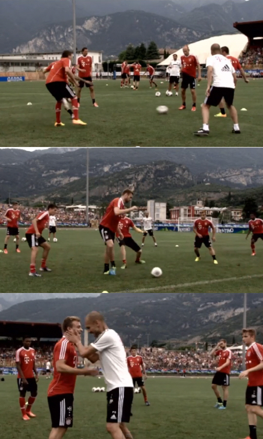 지난달 25일 뮌헨 사령탑에 공식 부임한 과르디올라는 이틀 뒤인 27일 첫 훈련부터 티키타카 연습을 시키며 '뮌헨에 바르셀로나 색깔을 입히고 있다'는 평가를 받고 있다. <스포츠조선닷컴>