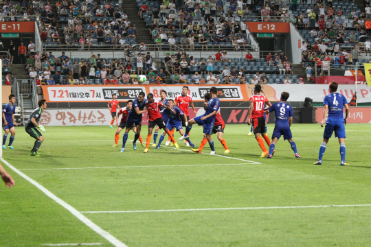 후반에도 양 팀 모두 치열한 공방전을 거듭했다. 골이 좀처럼 터지지않자 박 감독과 서 감독은 모두 교체 카드를 꺼내들었다. 수원은 후반 11분 박종진과 조동건을 맞바꾸며 화력의 세기를 더했고 제주는 후반 13분 송진형 대신 오승범을 교체 투입하며 중원의 안정감을 꾀했다.