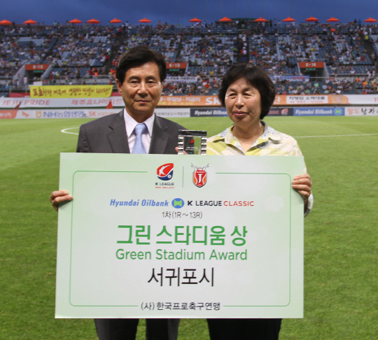 한국프로축구연맹(총재 권오갑, 이하 '연맹')은 2013년 현대오일뱅크 K-리그 클래식 18라운드가 열린 13일 제주월드컵경기장에서 '그린 스타디움상'과 '팬 프렌들리 클럽' 시상식을 가졌다.