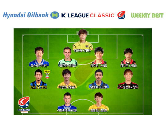 한교원과 함께 18라운드 최고의 미드필드에는 노병준(포항) 남준재(인천) 이종원(성남)이 꼽혔다. 투톱에는 최강희호 1기에 승선한 김동섭(성남)과 라돈치치(수원)가 선정됐고 최고의 수비진에는 김치우 김주영(이상 서울) 윌킨슨(전북) 홍순학(수원)이 이름을 올렸다. 18라운드 최고의 수문장 자리는 강원의 골키퍼 김근배에게 돌아갔다.