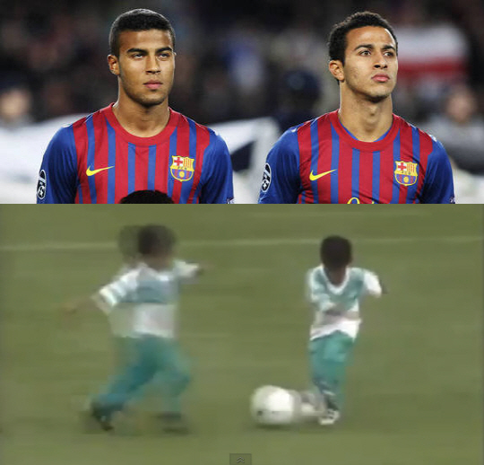 바르셀로나에서 바이에른 뮌헨으로 이적한 티아고 알칸타라(22)가 동생 라피냐(20)와 코흘리개 시절 축구를 하는 영상이 지난 16일(한국시각) 공개돼 눈길을 끌고 있다.