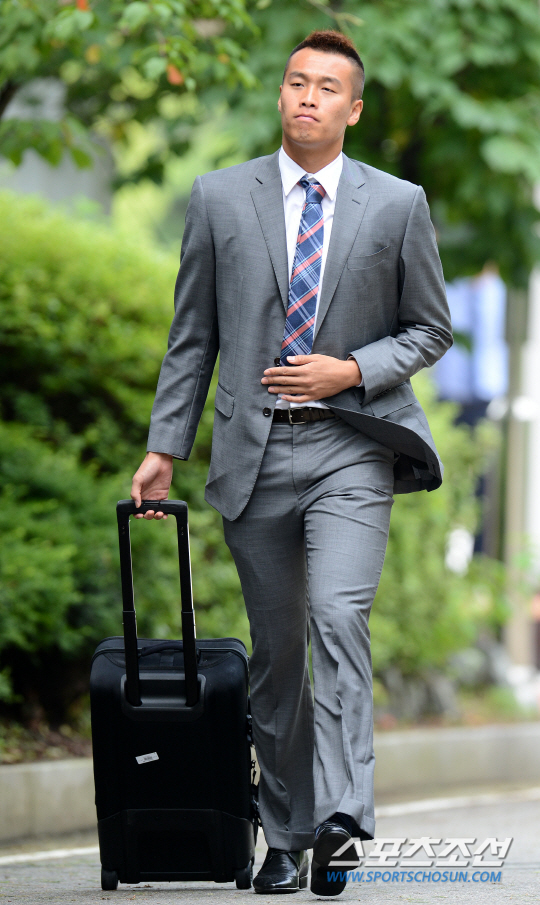 이날 김신욱은 입소 시 지켜야 할 복장, 차량하차 등 홍 감독의 지시사항을 잘 준수했다. 먼저 복장은 6월 4일 레바논과의 2014년 브라질월드컵 아시아지역 최종예선 6차전을 위해 출국하기 전 맞췄던 대표팀 단복을 입었다. 깔끔한 회색 정장이었다. 김신욱은 "정장을 입고 파주NFC에 오는 건 처음이다. 최대한 단정하게 일찍 와야겠다고 생각했다"고 전했다.